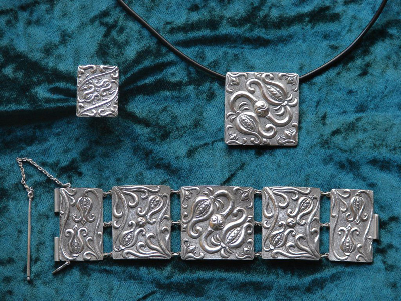 Egyedi tervezésű ötvös munkák, arany és ezüst ékszerek: karkötő, nyaklánc, nyakék, medál, akár tűzzománc díszítéssel, vagy drágakővel. Rendelhet nálam jegygyűrűt, vagy bármilyen ékszert saját elképzelése alapján.