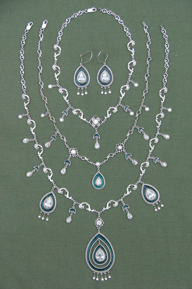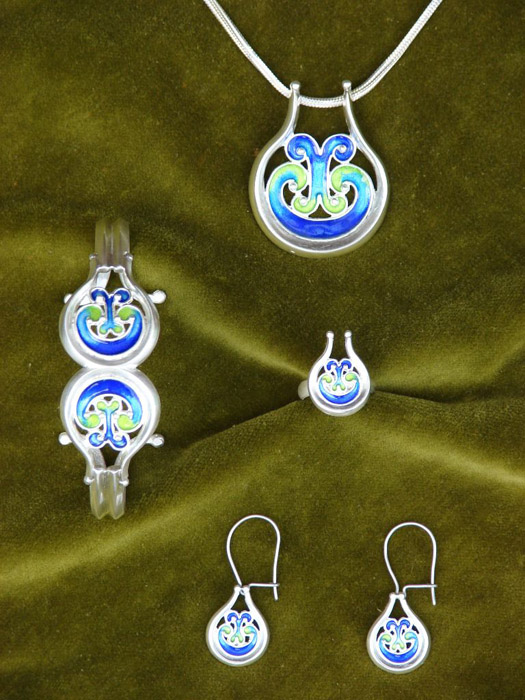 Ennek az ezüst tűzzománcos ékszer kollekciónak az az érdekessége ,hogy a nyaklánc – egységeit külön-külön is viselni lehet.