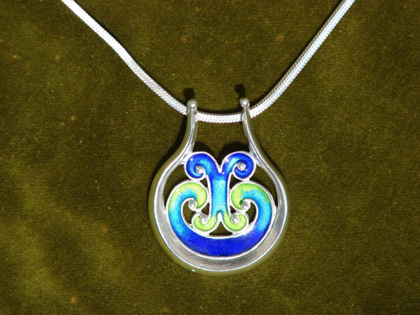 A tűzzománcos részek alapját átcizelláltam, így azok mintája átragyog az áttetsző ékszerzománc alatt.