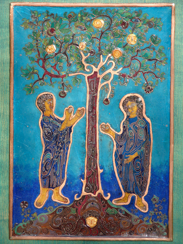 Ezen a zománcképen azt az ősi állapotot láthatjuk , amikor az ember még nem szakadt ki önálló akarata miatt a teremtett mindenekből,a mindenség rendjéből.
