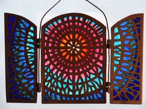 (840 fokon összeégetve).Ezután történt a rekeszek feltöltése (több fázisban,feltöltésenkénti égetésekkel) a színes ékszerzománccal,majd utolsó műveletként a kép síkra csiszolását, az utolsó ún.fényező égetés követte.